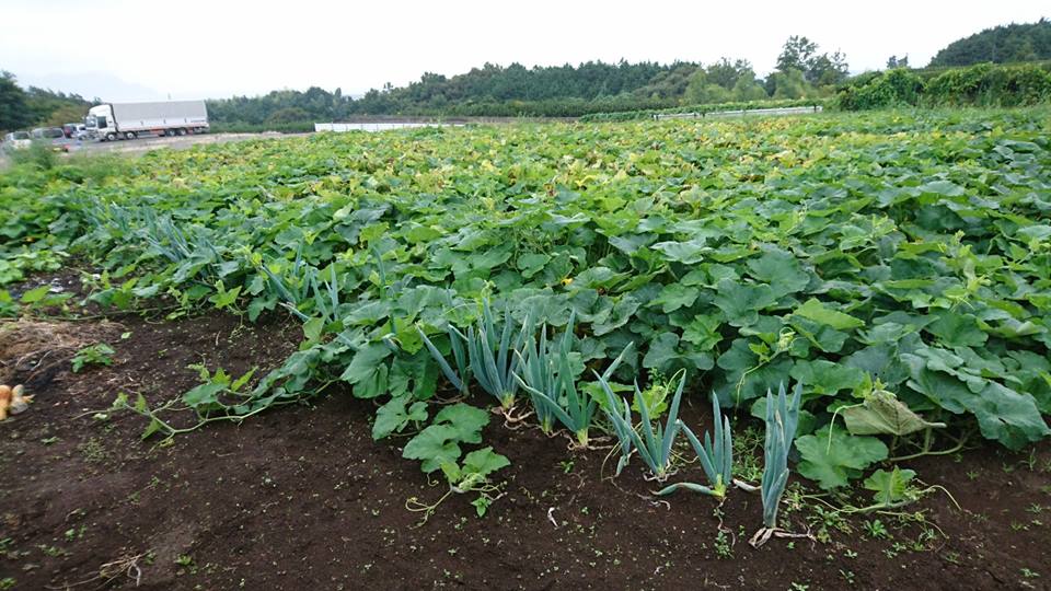 10月21日久し振りに畑 今朝は見学で下田戻り つる首かぼちゃはまだ花が咲き 実は青い これからこれから 腰痛の私の代わりに耕作手入れの植松さんチームありがとうです。