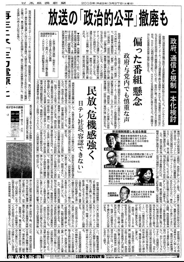 自由を束縛するものでもなく、公平性のある放送という点においても撤廃とか削除とか必要ないなあ?と思いつつ新聞報道に目をやっていますが、何より 自由・民主主義の国デス