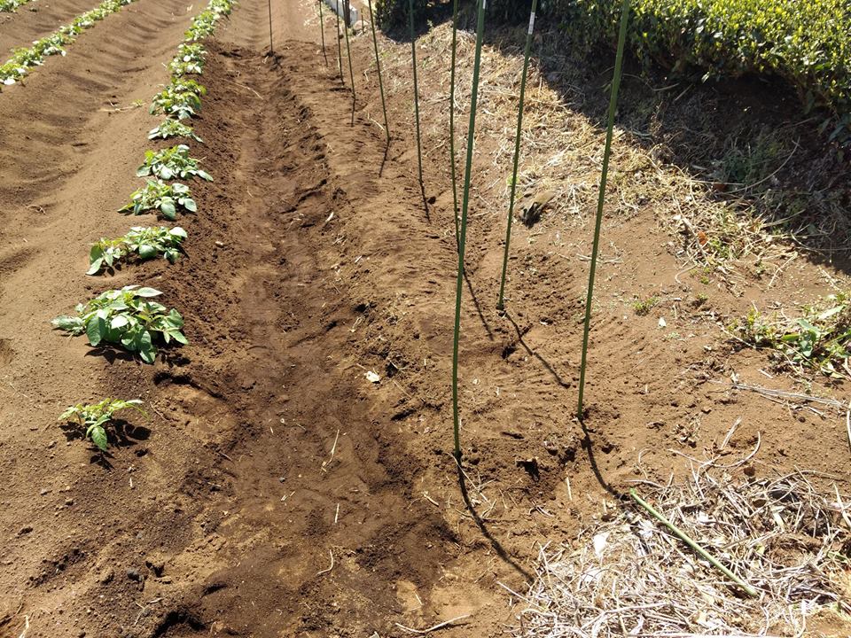 植え付け床を作ったままで下田へ、種芋は進士英治さんからの贈り物 エイちゃんありがとう 晩秋には80㎝から1メートルの芋になります