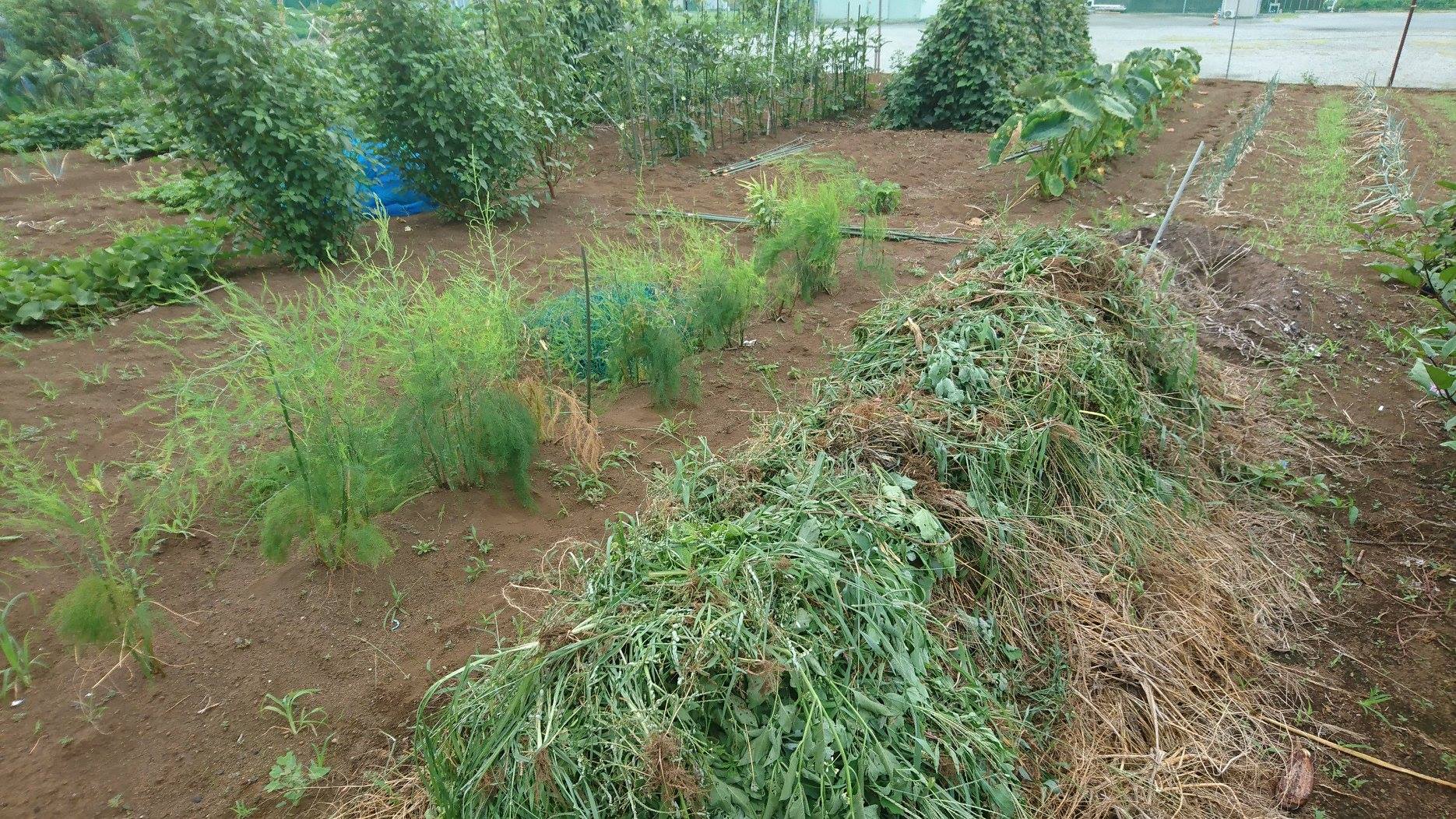 ブログ 草抜き 2018年8月30日 by KTV-12ch 8月29日さあ私の夏休み外気温度35℃沼津の畑アチーぃ、来たら草茫々・・這いづっての草抜き、さあ明日は午前中打ち合わせ、午後から耕運機をかけてナスの秋茄子対策、剪定をして下田の人が好物のサツマイモの茎も、母ちゃん自慢のゴーヤの佃煮用材料も収穫です