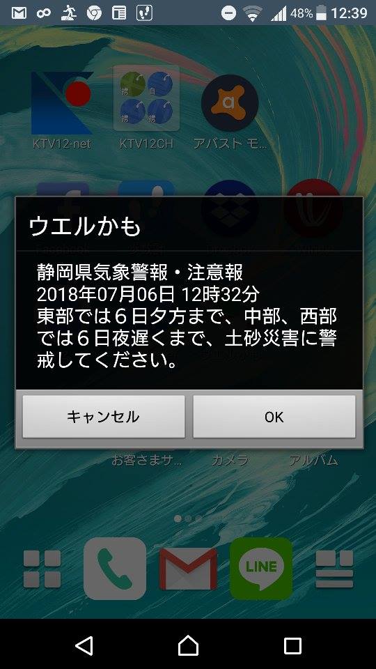 7月29日あさ 昨日停電対策で頑張った若者達を宣伝しよう、スマホアプリの「ウエルかも」テレビのデータ放送と連動して賀茂地域に限定しての災害情報集結、天城峠が雪で通れるか?から天城峠の雨量は?稲生沢川の増水は?賀茂の事なら何でも聞いて?と動いてます。元データは静岡県のサイポスレーダーです。県データを感謝です!でも良くわからないのはWINDYTY、すごいデータ表示だ!!本社チェコ?社員9名?驚き!と感激している脇で会社の若い連中は「元データの活用、利用の活かし方はどこまでも進める事が出来るんですよ!!」と???ワタシャ浦島太郎のおじいさんかあ??でもありがたやありがたや